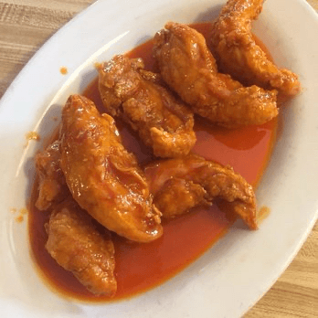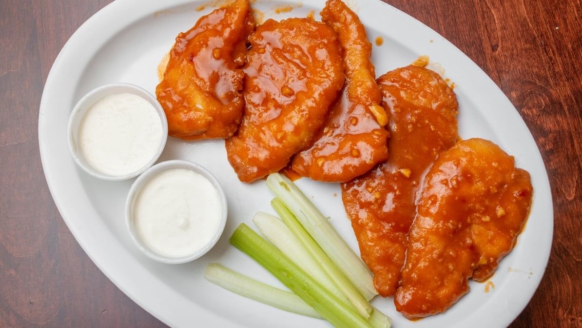 Breaded chicken, sautéed in buffalo sauce (blue cheese dressing not included)