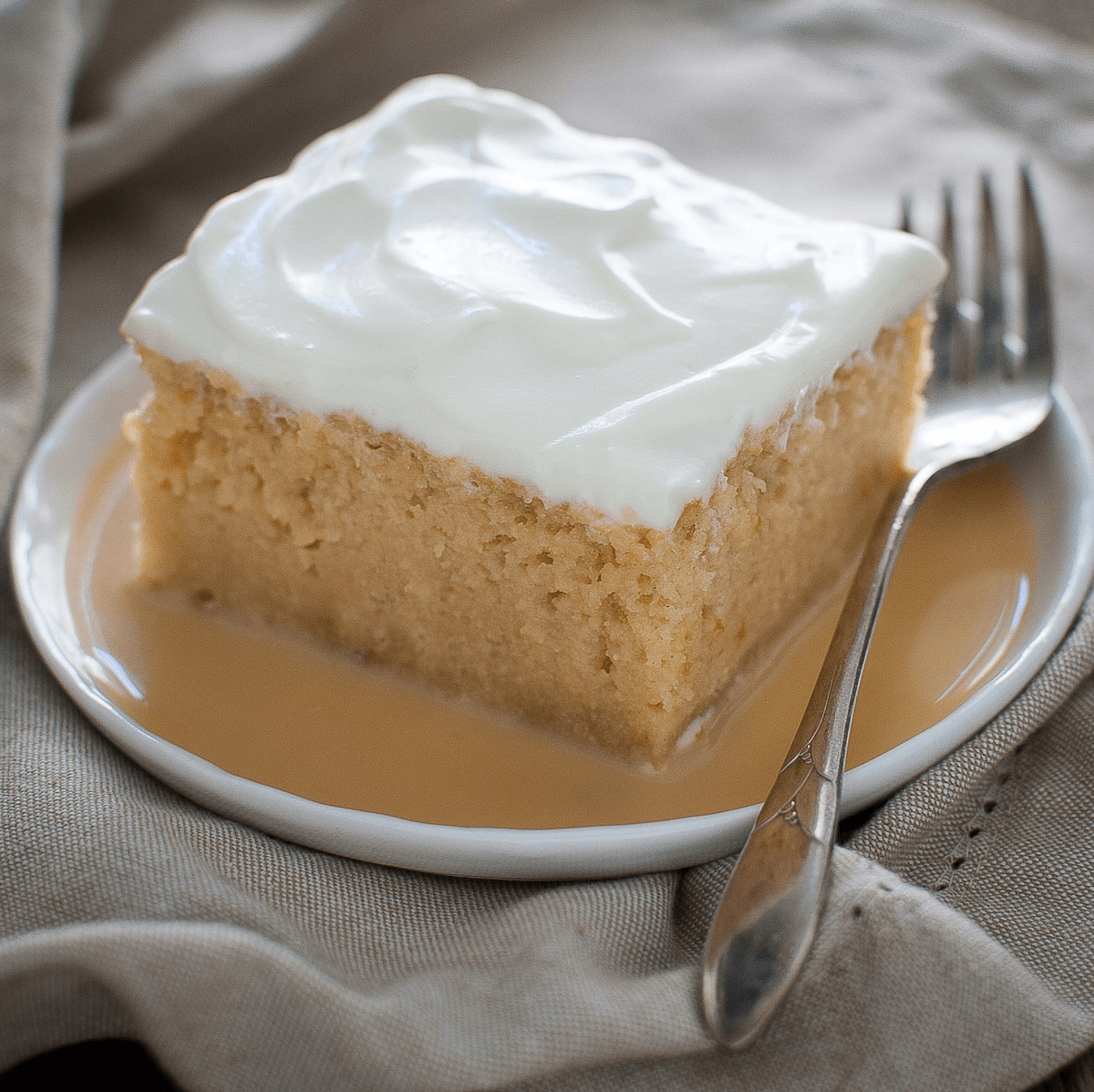 Tres leches is a Mexican dessert: a light sponge cake soaked in three milks: evaporated milk, condensed milk, and cream, making it very moist and sweet.