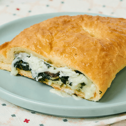 Tomatoes, spinach, black olives, red onions, mozzarella & feta cheese