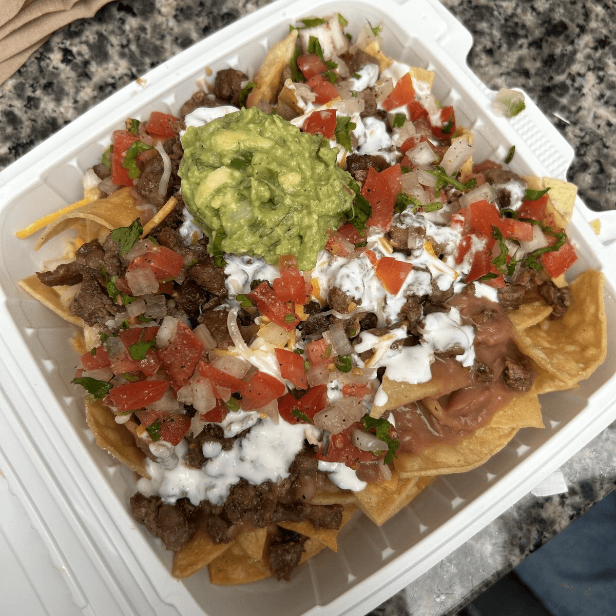Grilled chicken, sauteed green peppers, fried onions, melted mozzarella, corn, beans, tomatoes, cucumbers & tortilla strips