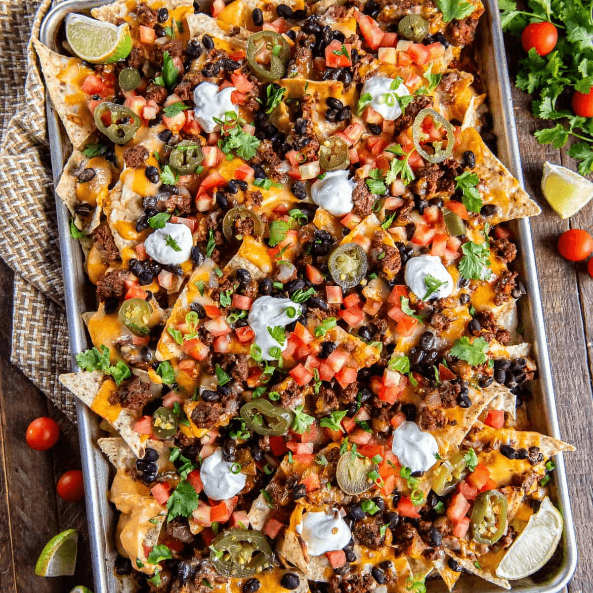Lettuce, tomatoes, jalapenos, beans & cheese sauce w/side of sour cream