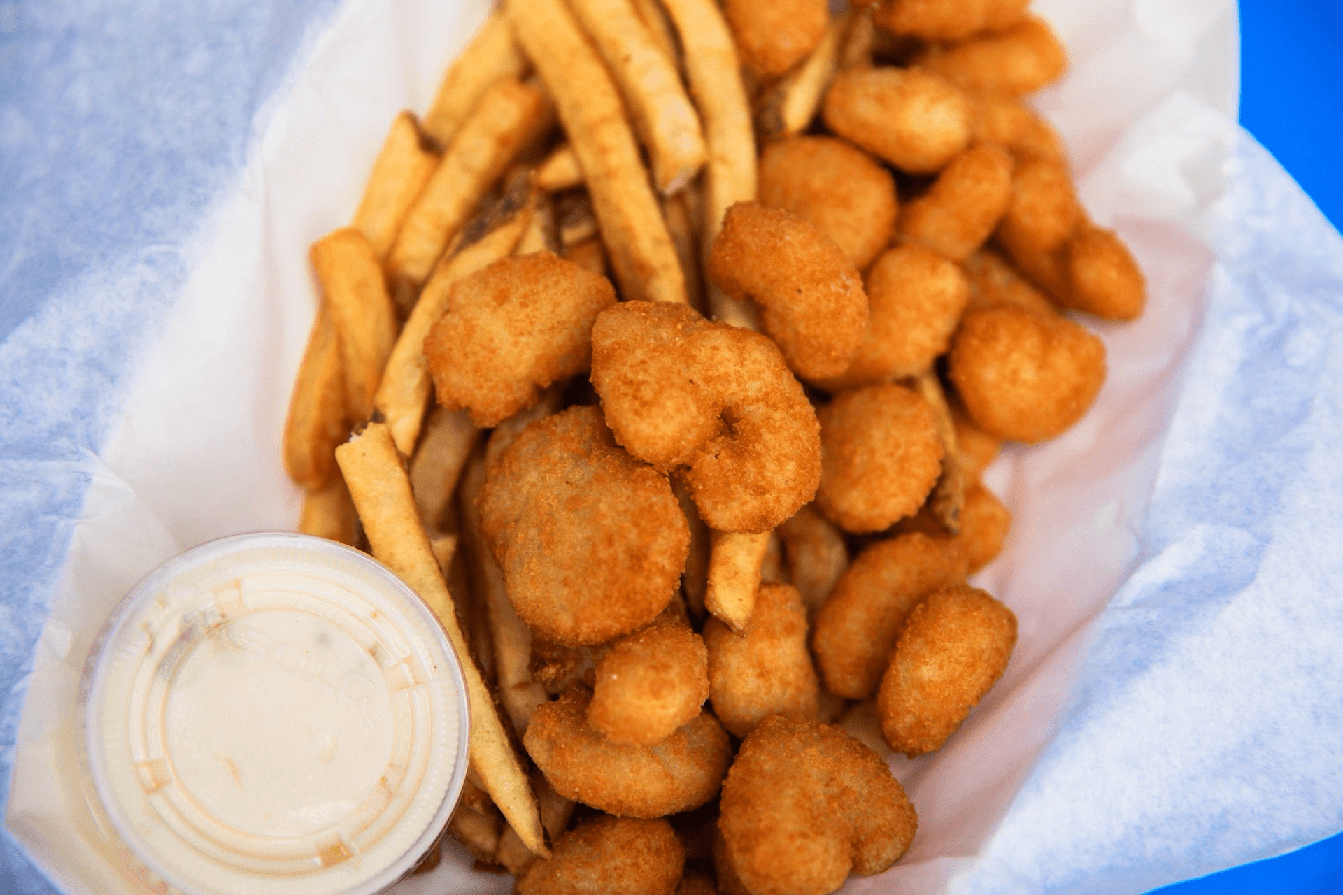 2 chicken fingers, 2 mozzarella sticks, 2 poppers & 4 wings. Comes w/marinara & hot sauce