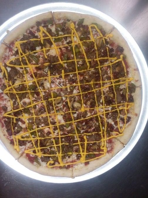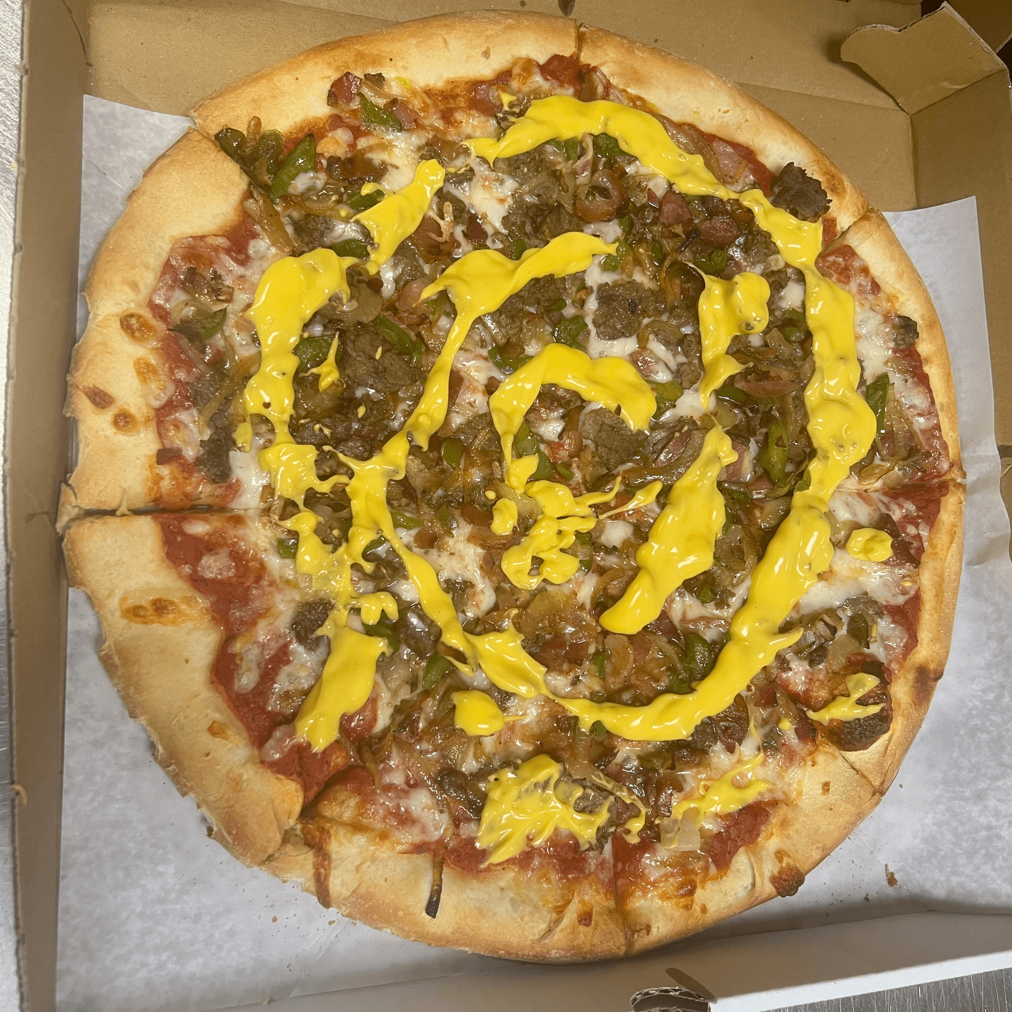 Cheesesteak, bacon, onions, green peppers & cheese sauce