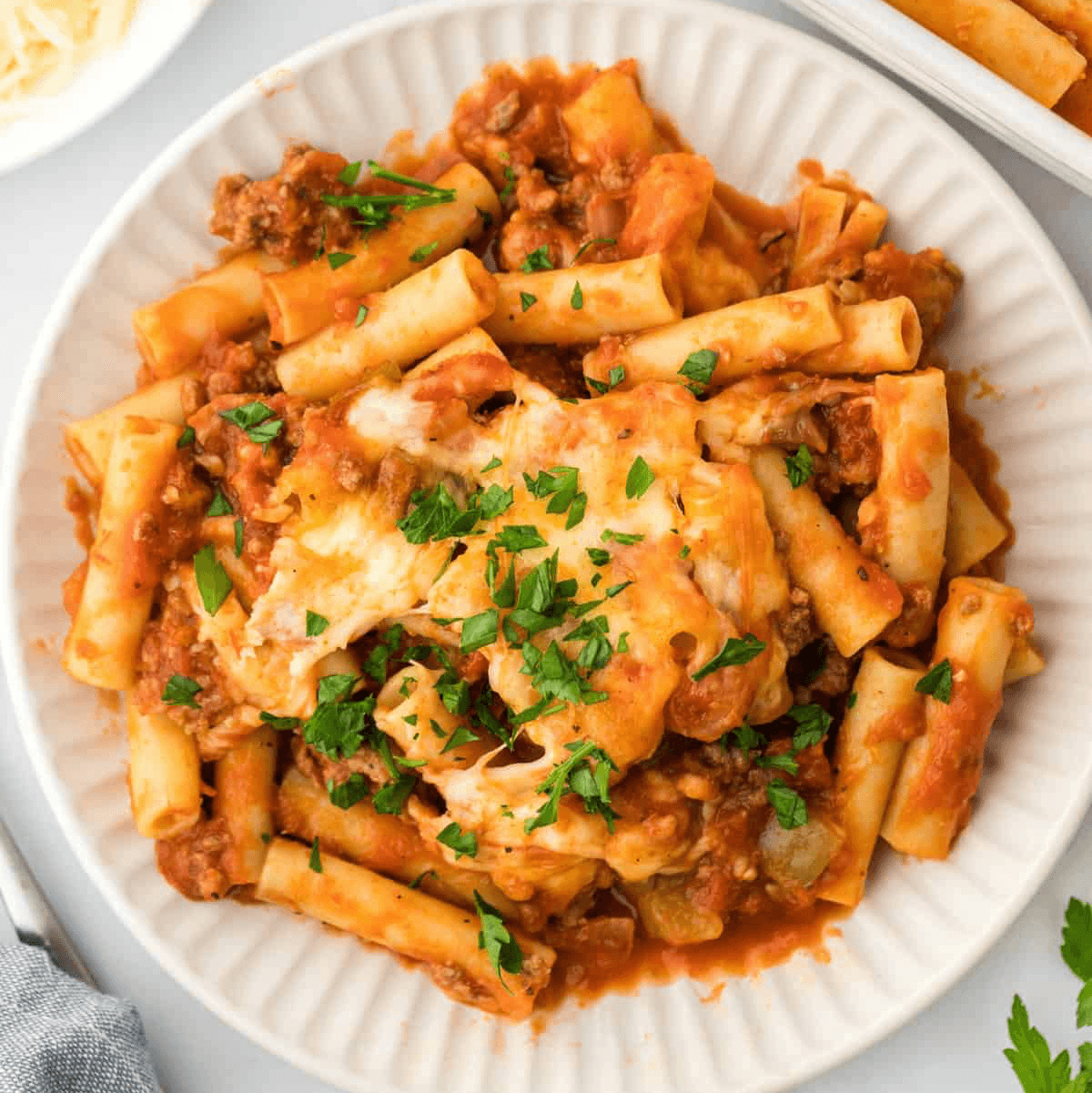 Bacon, ground beef, mozzarella cheese topped w/cheddar cheese sauce
