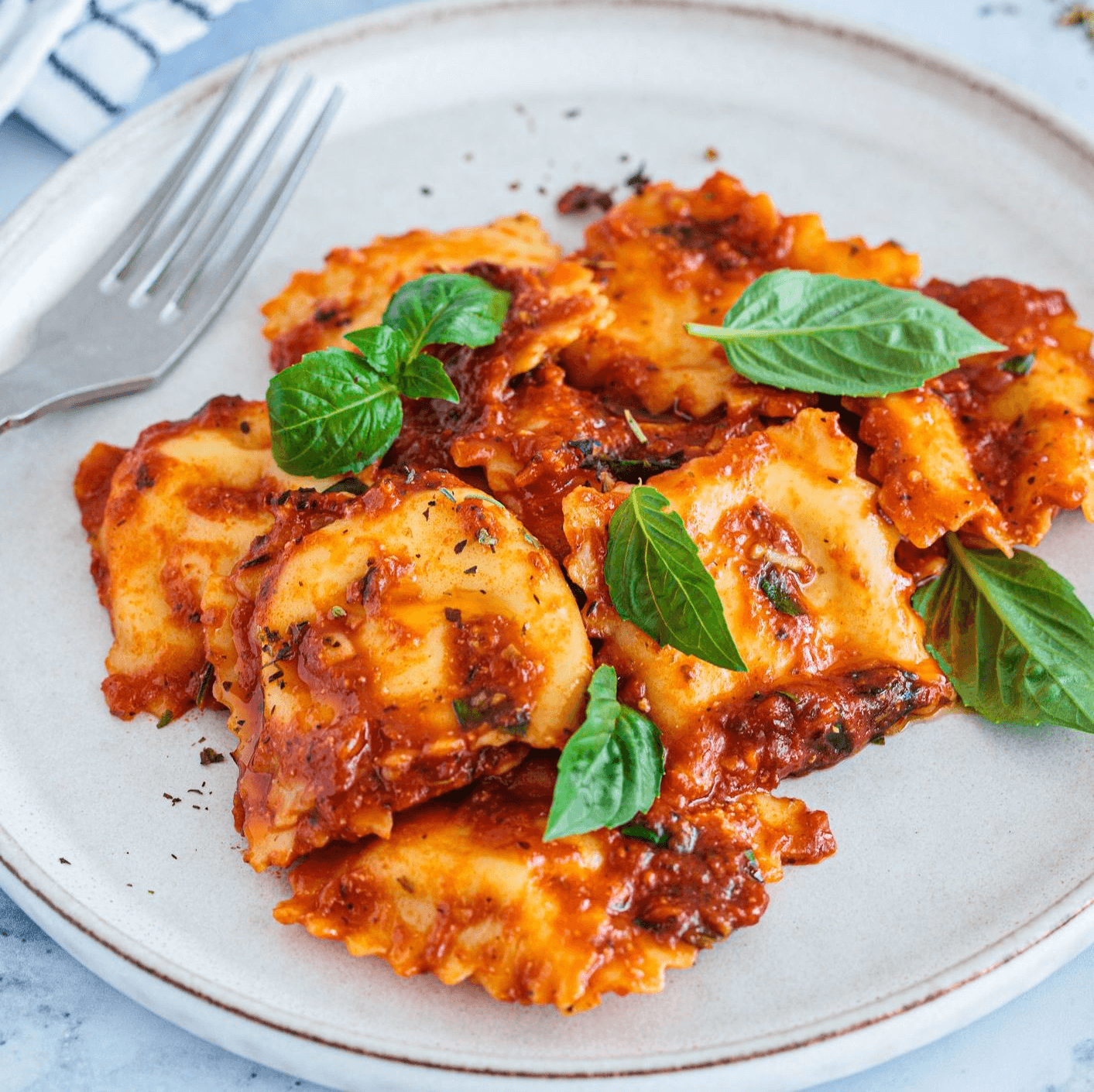 Gorgonzola cheese, ricotta, mozzarella, roasted red peppers & roasted garlic